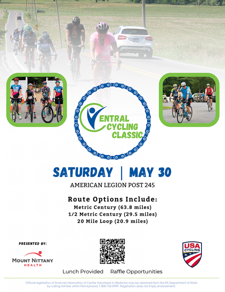 Centre Volunteers In Medicine will be hosting the Central Cycling Classic on May 30, 2026, at the American Legion!