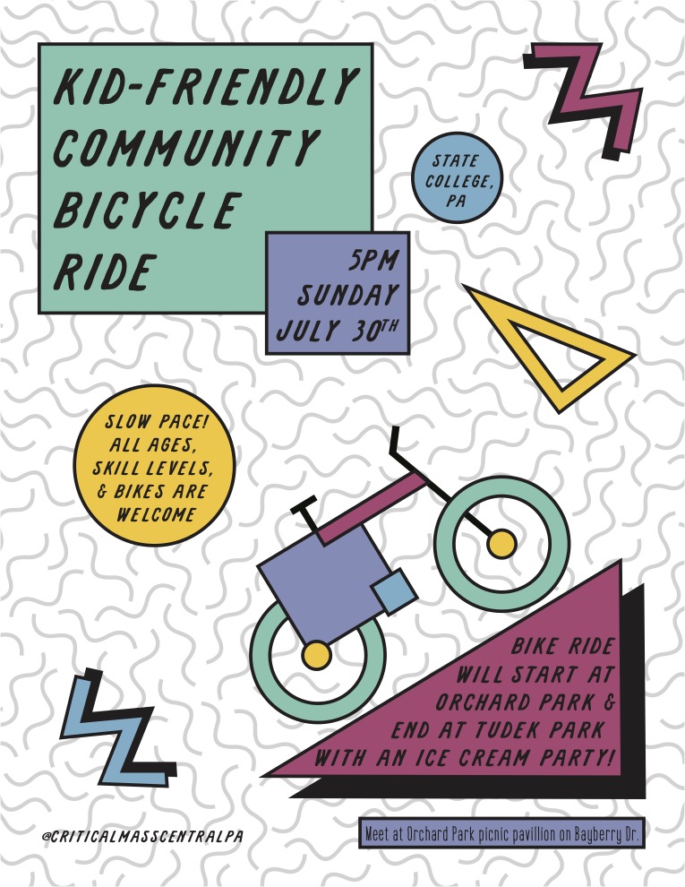 There will be Kidical Mass Sunday July 30th at 5pm starting at orchard park and ending at tudek park, with an ice cream party!!