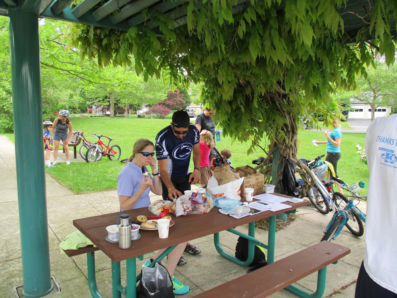 On Saturday, May 16, 2015, a large group of local cyclists enjoyed a family-friendly bike ride to celebrate May Bike Month. 30+ riders, including CentreBike members, mayor Elizabeth Goreham, and local families, biked a 7-mile loop around State College.
