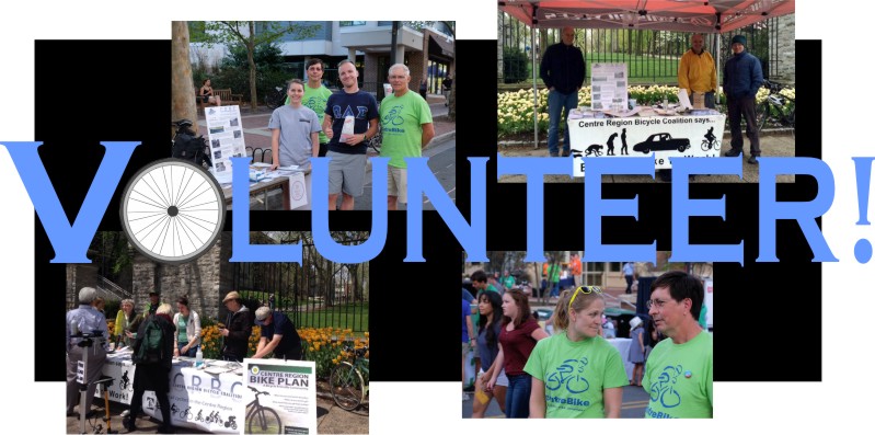 Thanks for considering sharing your time to help us distribute information about bicycling in the Centre Region!